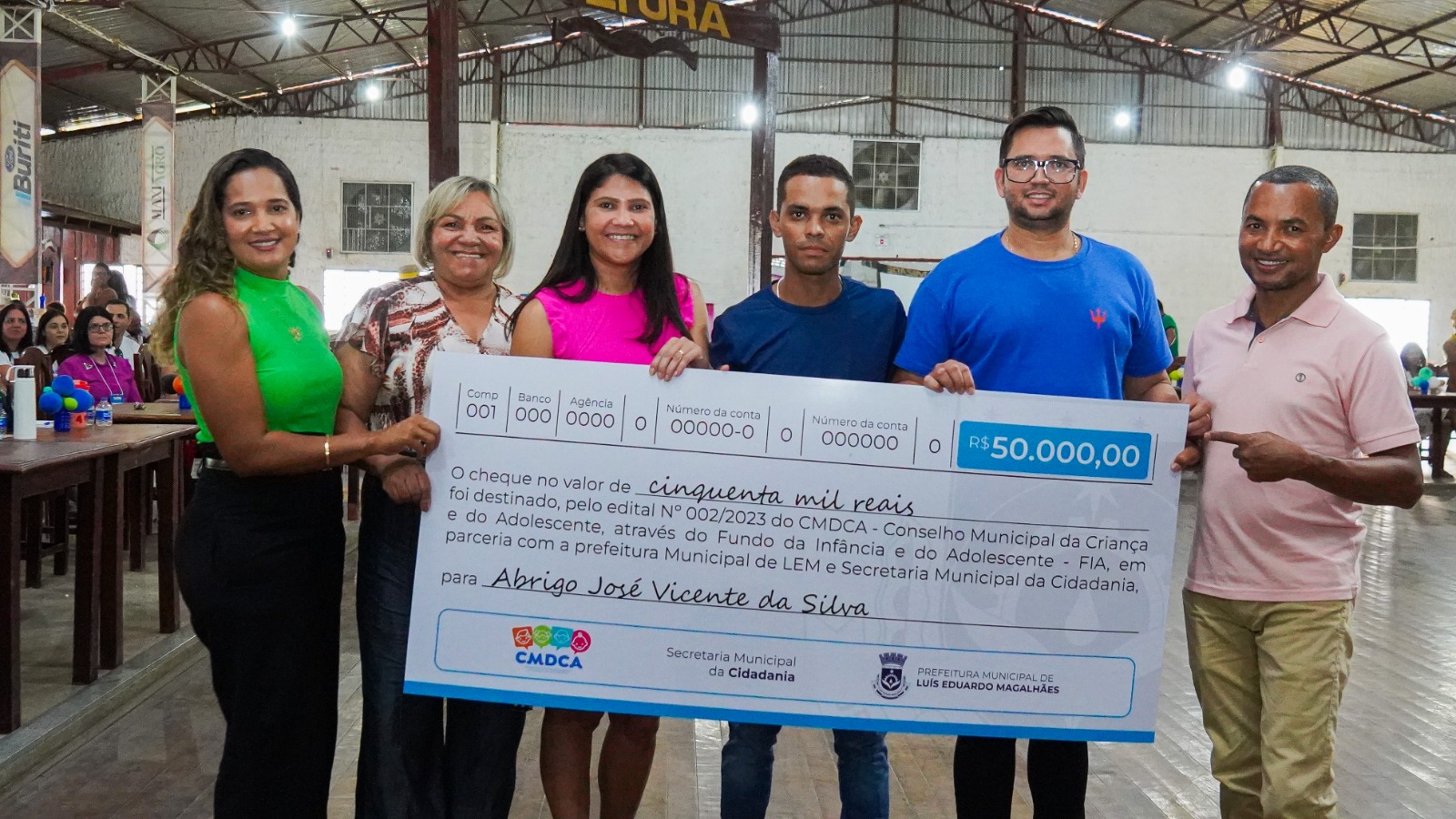 As 05 instituições contempladas no segundo edital do Conselho Municipal da Criança e do Adolescente de Luís Eduardo Magalhães (CMDCA), receberam na tarde da quinta-feira (24), o cheque simbólico, no valor de R$ 50 mil, cada, para auxiliar nas suas atividades voltadas à promoção, proteção e defesa dos direitos da criança e do adolescente. São elas, AMA-LEM, Lions Clube, Projeto CRER, Meninos do Brasil e Abrigo José Vicente da Silva. A cerimônia foi realizada durante a abertura da 11º Conferência Territorial da Criança e do Adolescente, que acontece até hoje, no Centro de Tradições Gaúchas (CTG), Sinuelo dos Gerais.